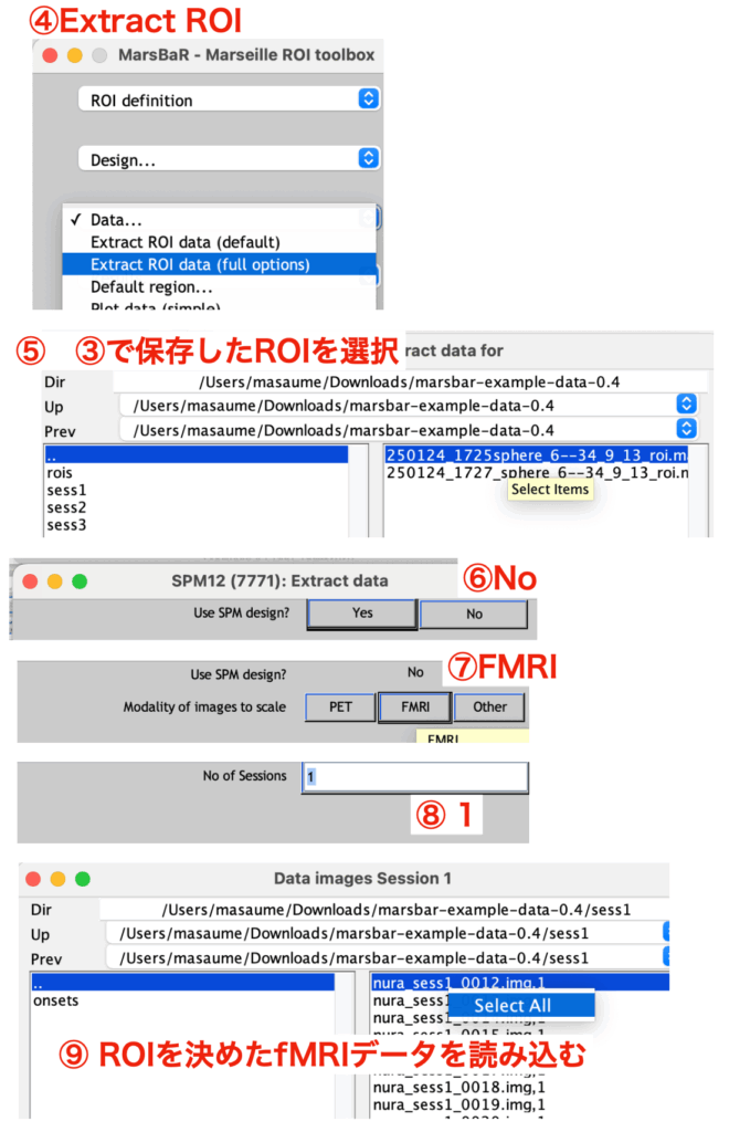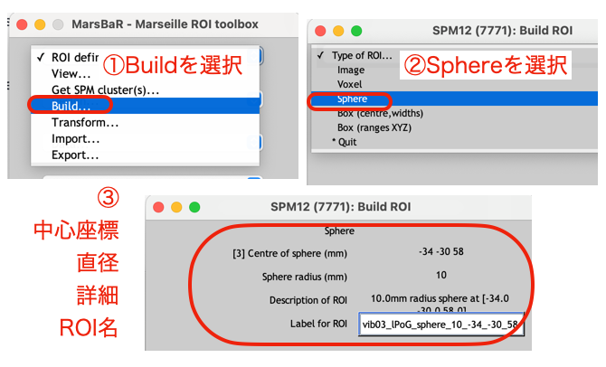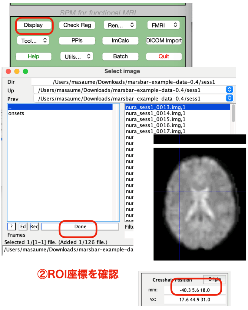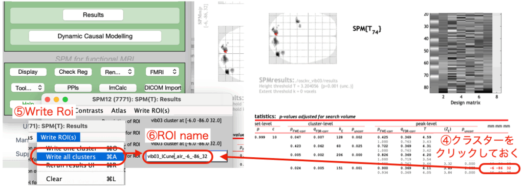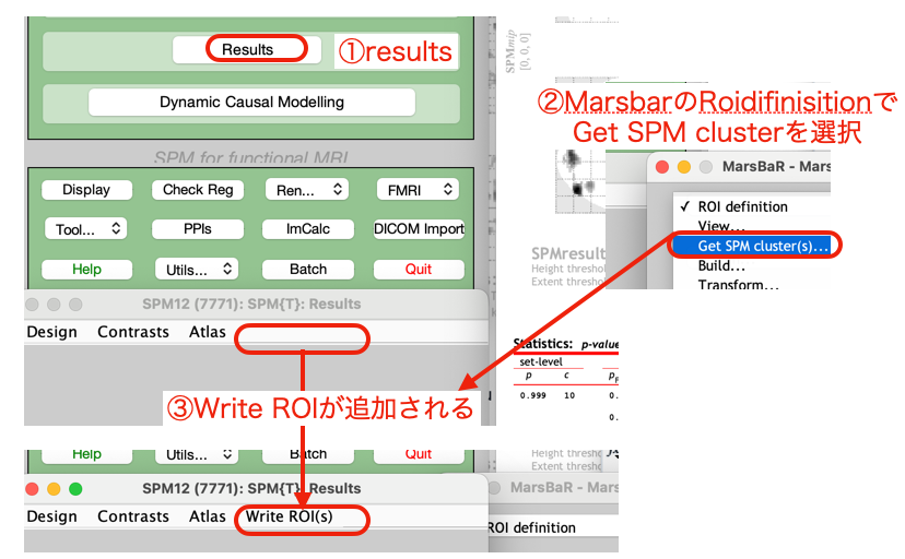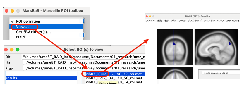 ROIの設定:SPMのresultを表示し、クラスターをクリックし、Marsbarを起動してWrite ROIを行う。