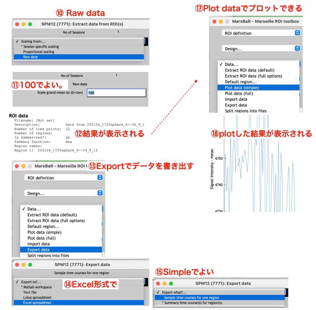 ⑥信号値の抽出とプロットおよびデータの書き出し