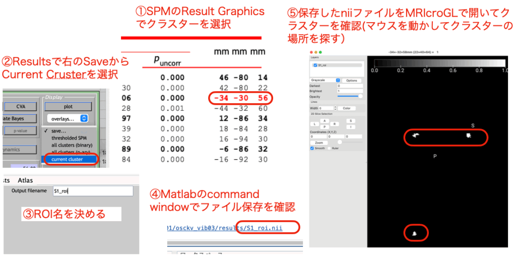 spmのクラスターの画像データをroiとして利用する場合は以下の手順でROIデータを保存する。