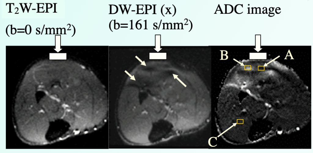 拡散強調画像で水移動を伴う組織歪みを観測する